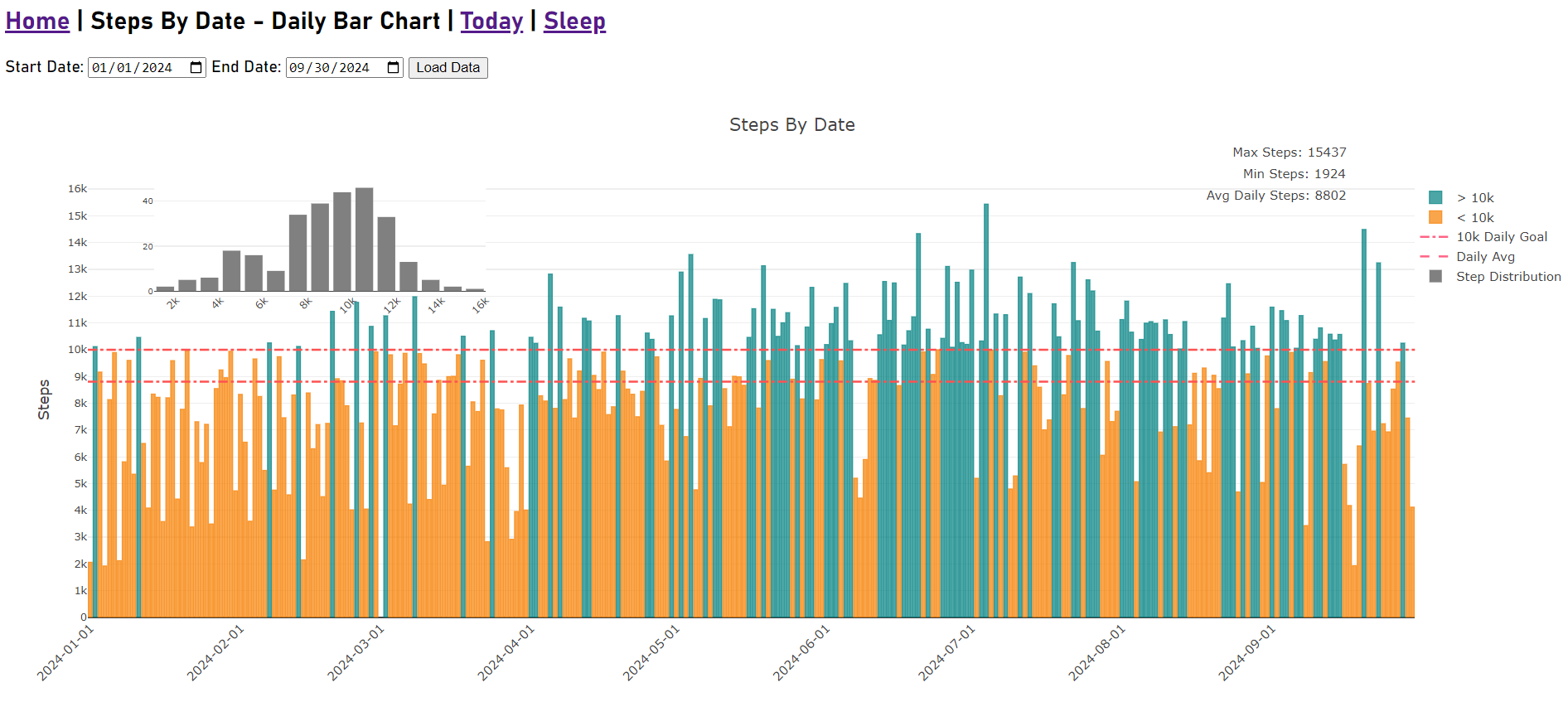 Our system securely retrieves and transforms your Fitbit data daily, building your personal health database over time.