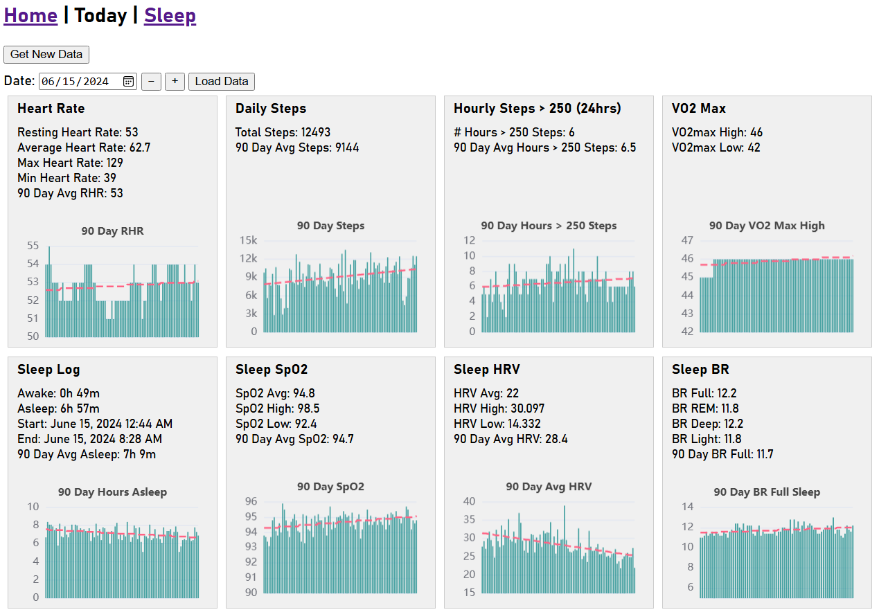 Access granular heart rate, SpO2, and other metrics recorded every few seconds instead of just daily averages.
